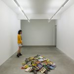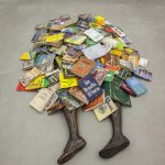 Quando questionado sobre algumas de suas obras que gostaria de destacar, Flávio cita “Eu te disse…”, de 2016 e que mostra duas pernas de bronze sob o que seria um corpo amontoado por livros de história do Brasil: