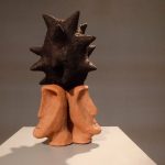 As esculturas a quatro mãos, algumas são verdadeiros totens, seduzem pelo uso de texturas e cores diferentes nas mesmas peças que, por sua vez, ficam entre o objeto utilitário e a escultura em si. Nelas, que abrigam espinhos de barro, há algo de pré-histórico, como se pertencessem a rituais pagãos ou se situassem entre o sagrado e o profano. É como se elas procurassem de alguma forma estabelecer um elo entre o céu e a terra, ou com o que está sob ela. Em muitas peças aparecem várias cabeças ou uma cabeça que tem três faces. Não há como não lembrar de Hécate, que habitava o mundo subterrâneo e é representada ora com três corpos, ora com um corpo e três cabeças. Suas três faces simbolizam a virgem, a mãe e a velha senhora. Tendo o poder de olhar para três direções ao mesmo tempo, ela podia ver o destino, o passado que interferia no presente e que poderia prejudicar o futuro. De certa maneira, Brandão e a Mestra Nilvinha metem literalmente as mãos no passado, no presente e no futuro, moldando cada um deles em um fazer que reverbera além das fronteiras geográficas e avançam para uma universalidade na qual os saberes tradicionais se traduzem para o mundo na forma de uma arte que extrapola o conceito de ser “popular”.