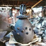 Mas a relação entre o homem e o barro se fortaleceu também por outro viés, mais subjetivo. No trabalho de tentar moldar a própria essência, a arte figurativa em barro se dissocia do artesanato utilitário e ganha novos espaços. O projeto “A Cerâmica Hermética”, por exemplo, surgiu com as experimentações e criações no barro de Rafael Brandão com Mestra Nilvinha, que abriu as portas da própria casa para o artista, que se hospedou no local e fez uso da oficina com forno a lenha, o mesmo que a artesã utiliza para cozer as tradicionais panelas e utensílios domésticos feitos com o barro e alimentar sua família. Dessa vivência surgiram as 12 esculturas que foram inspiradas na música Slave Mass, de Hermeto Pascoal, filho do barro do município de Lagoa da Canoa, em Alagoas, onde também nasceu e vive a Mestra Quitéria Bispo, mais conhecida como Nilvinha. Ela foi um dos seis artistas alagoanos premiados pelo Ministérios da Cultura em 2013, por intermédio do Prêmio Culturas Populares. Em um depoimento, o músico conta que fez a música pensando nos escravizados e nos perseguidos políticos da ditadura militar. Ele comentava que os presos eram torturados em troncos de Barriguas, árvore típica do sertão, que abrigam espinhos robustos.