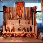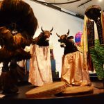 Bumba-meu-boi (dança popular com personagens humanos e animais), o maracatu (ritmo musical, dança e ritual de sincretismo religioso com origem no Pernambuco), as vaquejadas do nordeste, o forró, as congadas (dança de coroação dos reis do Congo) e a festa do Divino, culto do catolicismo popular… todas essas são expressões culturais que mantém vivo o nosso folclore, as crenças locais, e estão presentes no espaço da exposição.