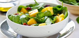 Ao lado de um ratatouille quentinho, uma salada fresca a refeição ainda mais gostosa. Principalmente se for uma salada especial com frutas como a manga.
